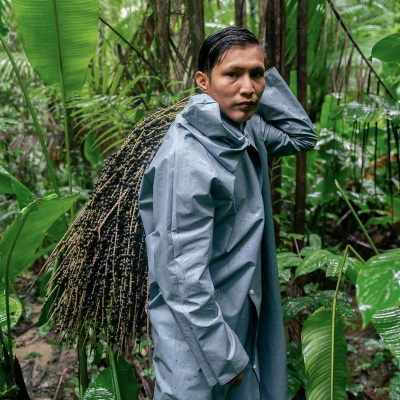 Indígena coletando açaí em Terra Indígena no Oiapoque-AP, na Amazônia.